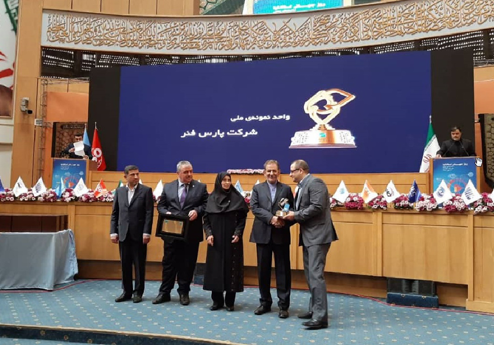 دریافت تندیس و لوح تقدیر واحد نمونه ملی (شرکت پارس فنر) از معاون اول رییس جمهور